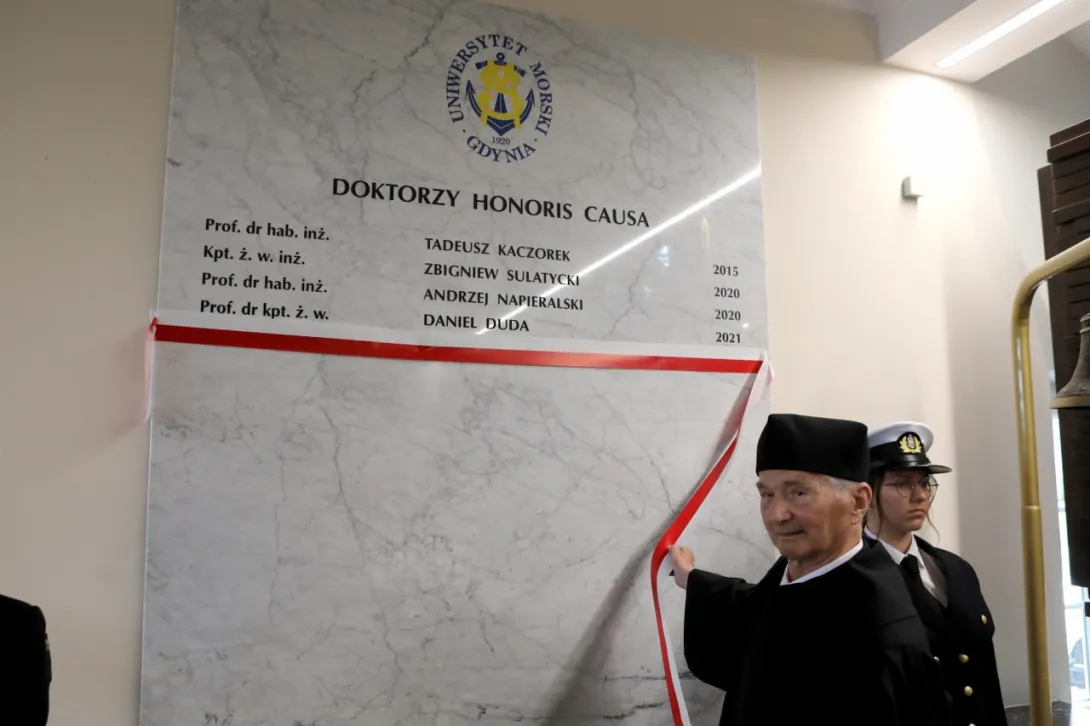 Uroczystość zakończyła się odsłonięciem tablicy z nazwiskami Doktorów Honoris Causa w holu głównym Uniwersytetu Morskiego w Gdyni.