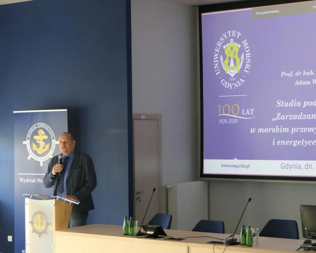 Słuchaczy przywitali: dziekan Wydziału Nawigacyjnego dr hab. inż. Tomasz Neumann prof. UMG oraz kierownik studiów dr hab. Agnieszka Blokus-Dziula prof. UMG. Swoje wystąpienia wygłosili również JM Rektor UMG prof. dr hab. inż. kpt. ż.w. Adam Weintrit oraz Prezes Zarządu PGE Baltica Dariusz Lociński.