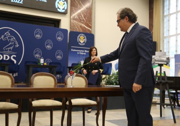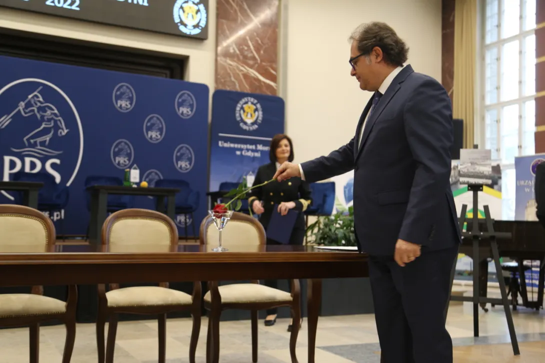 Zebranych gości oraz przedstawicieli mediów powitał JM Rektor UMG prof. dr hab. kpt. ż.w. Adam Weintrit, wskazując na nieprzypadkową datę spotkania. 102 lata temu, 10 lutego 1920 r. gen. Józef Haller dokonał Zaślubin Polski z Morzem, wrzucając platynowy pierścień ofiarowany przez mieszkańców Gdańska w toń Zatoki Puckiej. Drugi identyczny pierścień do końca życia nosił na swoim palcu. W ten symboliczny sposób dokonało się postanowienie Traktatu Wersalskiego o przywróceniu Polsce dostępu do morza. 10 Lutego to również data urodzin Gdyni, miasta, które powstało 96 lat temu właśnie po to, aby świeżo odrodzona Polska miała swój port.