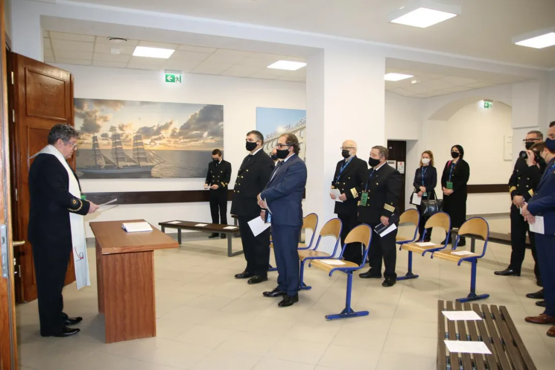 O tej szczególnej dacie w kontekście jej przymierza z przyszłością, mówił również duszpasterz ludzi morza ojciec Edward Pracz podczas poprzedzającej seminarium uroczystej modlitwy, która odbyła się w kaplicy w gmachu głównym Uniwersytetu Morskiego w Gdyni. Ta krótka symboliczna modlitwa, w której uczestniczyli minister Marek Gróbarczyk, JM rektor prof. dr hab. inż. kpt. ż.w. Adam Weintrit, prezes PRS dr hab. kpt. ż.w. Henryk Śniegocki oraz prezesi spółek morskich była również wyrazem szacunku dla przeszłości, dodatkowo podkreślonym szczególnym miejscem modlitwy. Ołtarz, który znajduje się w kaplicy UMG, towarzyszył „Darowi Pomorza” we wszystkich podróżach od 1930 roku do 1949, kiedy to został usunięty i przeznaczony do zniszczenia. Uratował go krawiec szkolny Leon Turzyński, który najpierw ukrył ołtarz w bunkrze opałowym Szkoły, pod koniec lat 60. we własnym domu, a w 1986 r. przekazał ks. Piotrowi Topolewskiemu. Ołtarz znalazł się ponownie w Uczelni w 75. rocznicę podniesienia bandery polskiej na „Darze Pomorza” w 2005 roku przekazany przez proboszcza parafii pw. Świętej Rodziny ks. Topolewskiego ówczesnemu rektorowi prof. Józefowi Lisowskiemu.