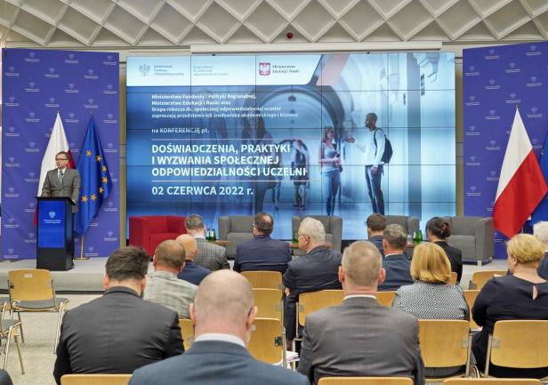 W dniu 2 czerwca 2022 roku odbyła się w Warszawie Konferencja o Społecznej Odpowiedzialności Uczelni zorganizowana przez Ministerstwo Funduszy i Polityki Regionalnej oraz Ministerstwo Edukacji i Nauki. W spotkaniu wzięli udział przedstawiciele środowiska akademickiego i biznesu. UMG reprezentował Prorektor ds. Kształcenia dr hab. Sambor Guze, prof. UMG.