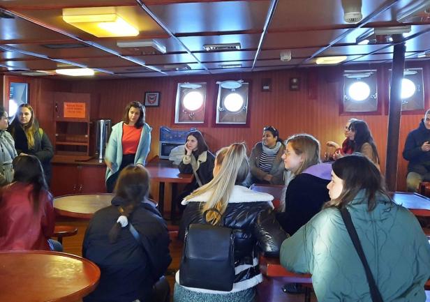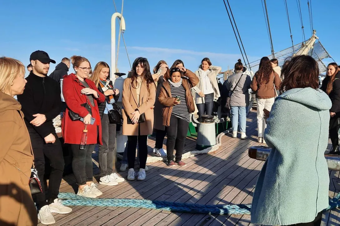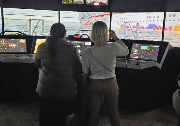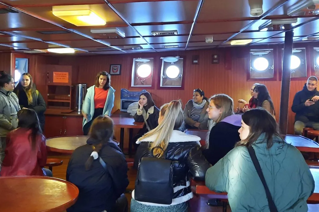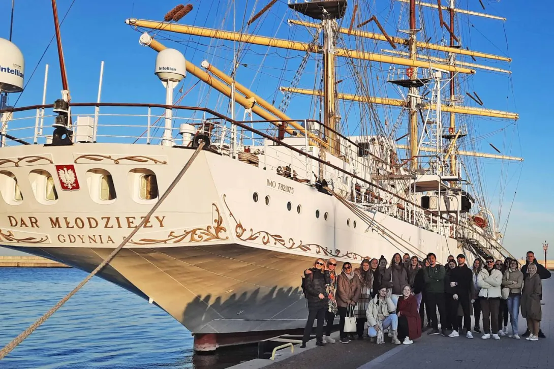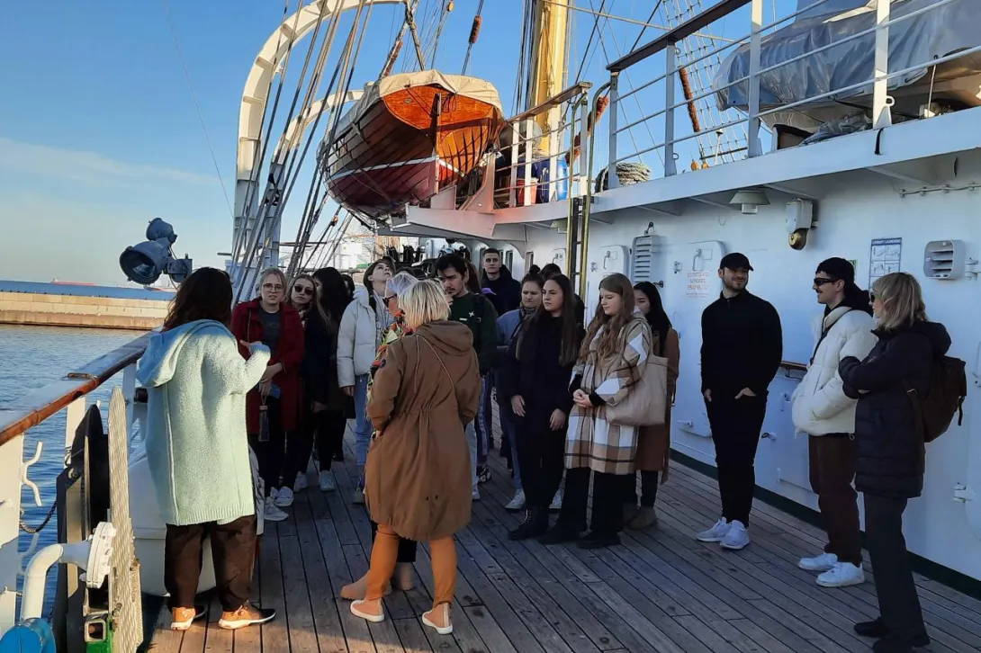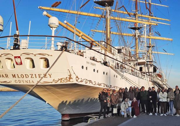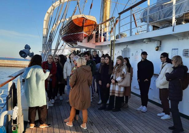 Podczas dwudniowej wizyty goście odwiedzili Wydział Nawigacyjny, gdzie uczestniczyli w warsztatach na Symulatorze Nawigacyjnym oraz wzięli udział w prezentacji w Planetarium. Mieli również okazję zwiedzić „Dar Młodzieży”, po którym oprowadziła ich III Oficer Pani Zofia Olchowy.