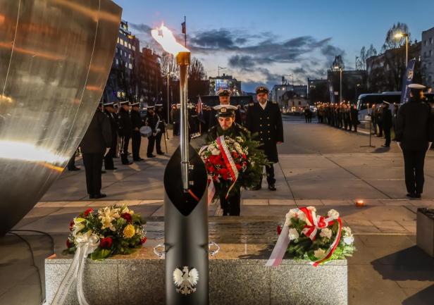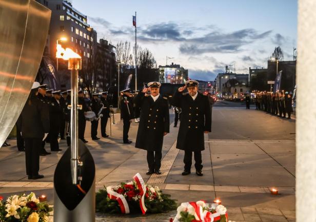 Uroczystość zakończyła się złożeniem wieńców pod pomnikiem Polski Morskiej przez władze UMG, przedstawicieli stowarzyszeń morskich i zaproszonych gości.