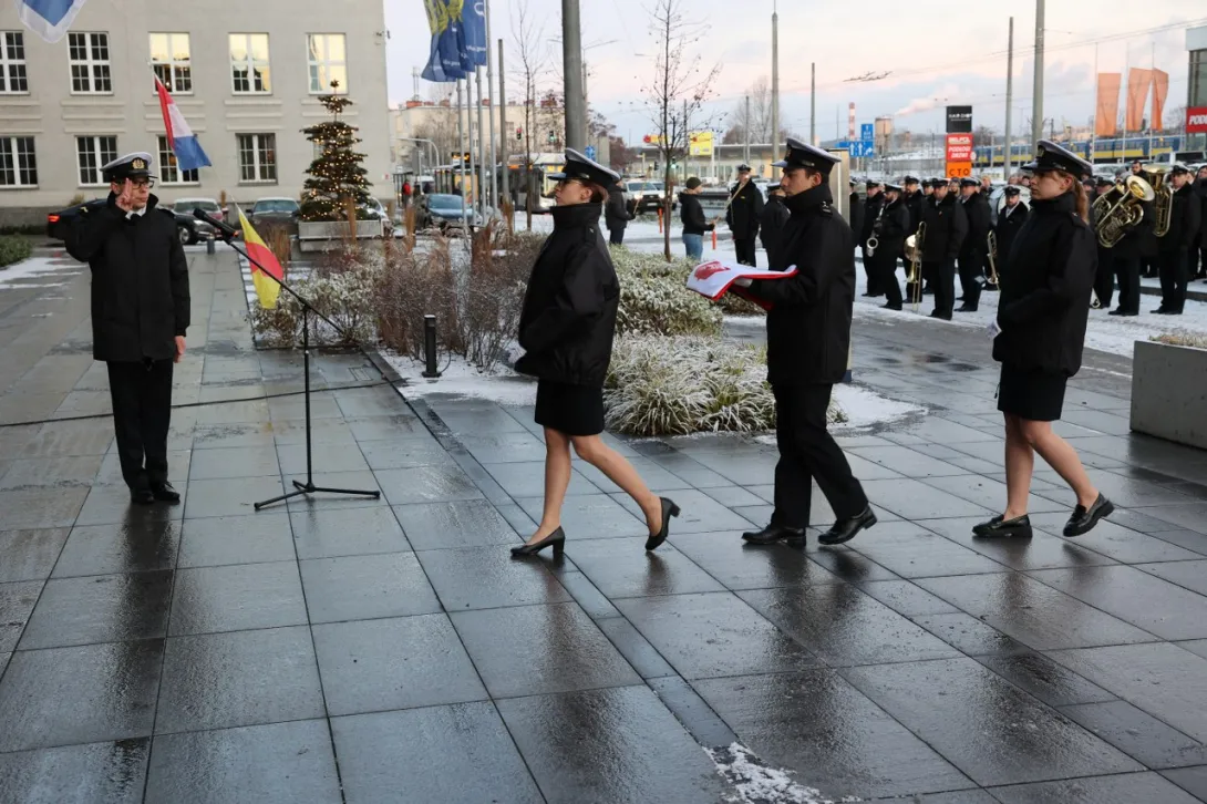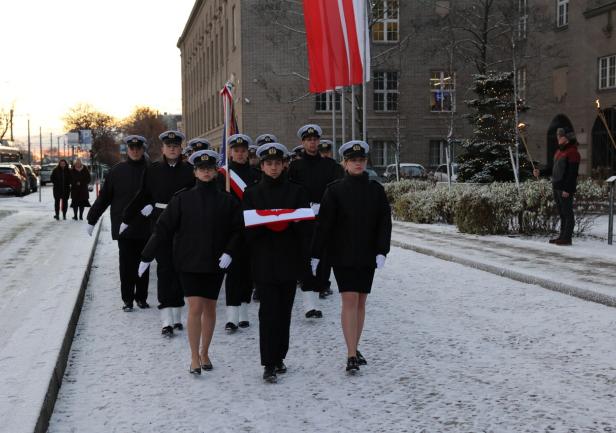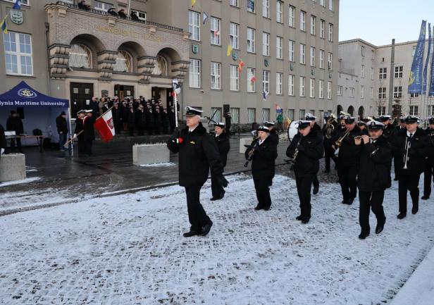 Na placu przed gmachem głównym Uczelni zgromadził się Senat UMG, pracownicy, studenci oraz absolwenci UMG. Sztandar Uniwersytetu Morskiego w Gdyni został uroczyście wprowadzony w towarzystwie Kompanii Reprezentacyjnej UMG oraz Orkiestry Morskiego Oddziału Straży Granicznej. Podczas podniesienia bandery Polskiej Marynarki Handlowej został odegrany Hymn Państwowy.