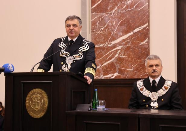 JM Rektor prof. Adam Weintrit z dumą mówił o sukcesach Uczelni i jej uznanej pozycji w świecie. Zaznaczył, że dwa kolejne lata kadencji będą ukierunkowane na internacjonalizację Uniwersytetu i rozszerzenie działań Uczelni w środowisku międzynarodowym. Prof. Weintrit mówił również o morskiej energetyce wiatrowej, która wkroczyła w sferę działalności Uczelni – budowane Centrum Offshore będzie siedzibą Instytutu Morskiego oraz powołanego przez Uniwersytet Centrum Morskiej Energetyki Wiatrowej, które prowadzi studia MBA w języku angielskim.