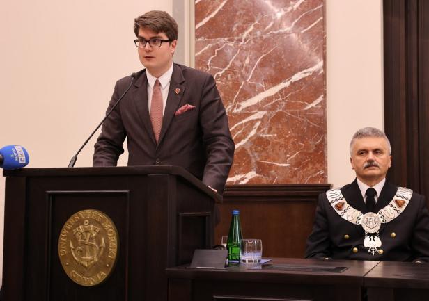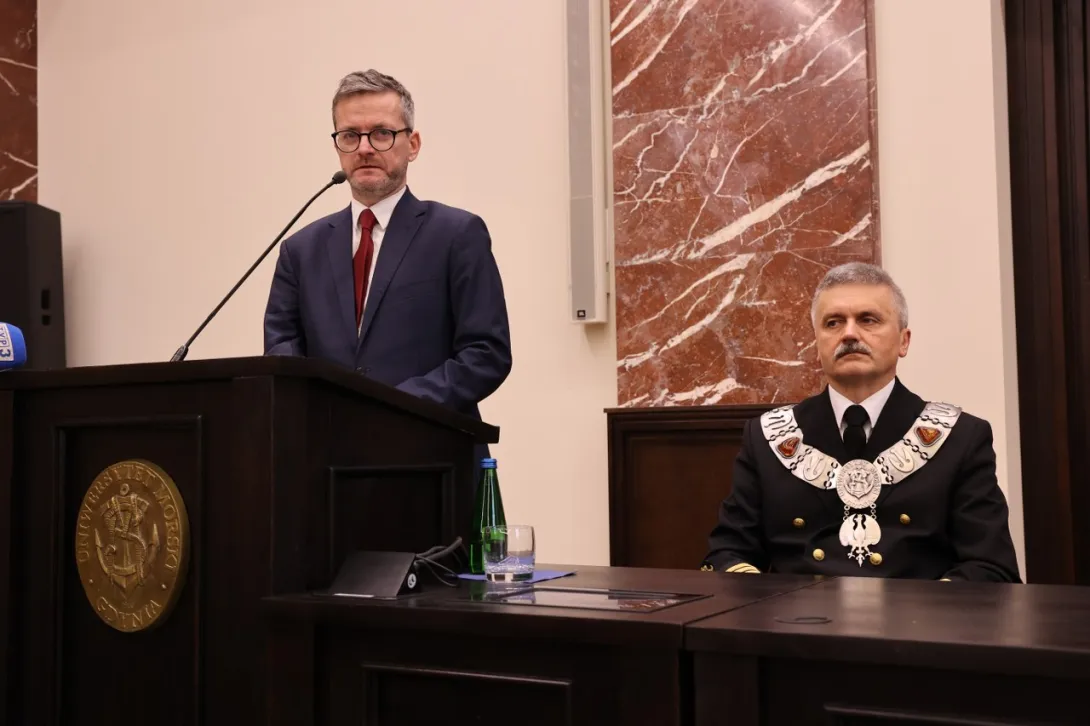Magnificencjo, dostojni goście, ale przede wszystkim studenci Uniwersytetu Morskiego w Gdyni! Z ogromną radością spotykam się dziś z Państwem w murach Uczelni na kolejnych już grudniowych uroczystościach związanych z obchodami Święta Szkoły. Udział w tym wydarzeniu jest dla mnie jako przedstawiciela Rządu Rzeczpospolitej Polskiej niezwykłym zaszczytem i honorem, bowiem jako Ministerstwo Infrastruktury stawiamy sobie stale za cel starania o dalszy rozwój Uniwersytetu oraz wzmacnianie jego pozycji jako renomowanego ośrodka akademickiego szkolącego przyszłe kadry, które będą wartościowym potencjałem dla polskiej gospodarki morskiej. Przypomnę, że na słynnej Liście Szanghajskiej Uniwersytet Morski w Gdyni stale notuje bardzo wysokie pozycje. Gratuluję!