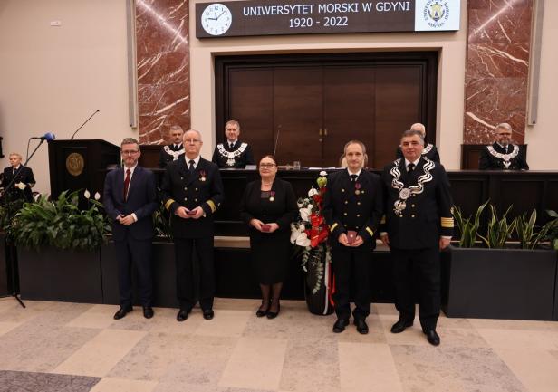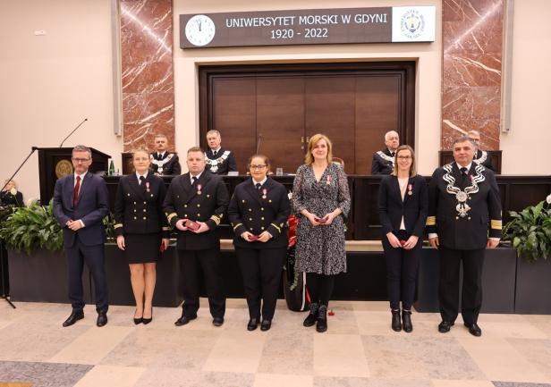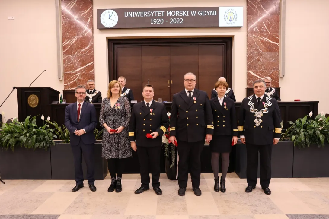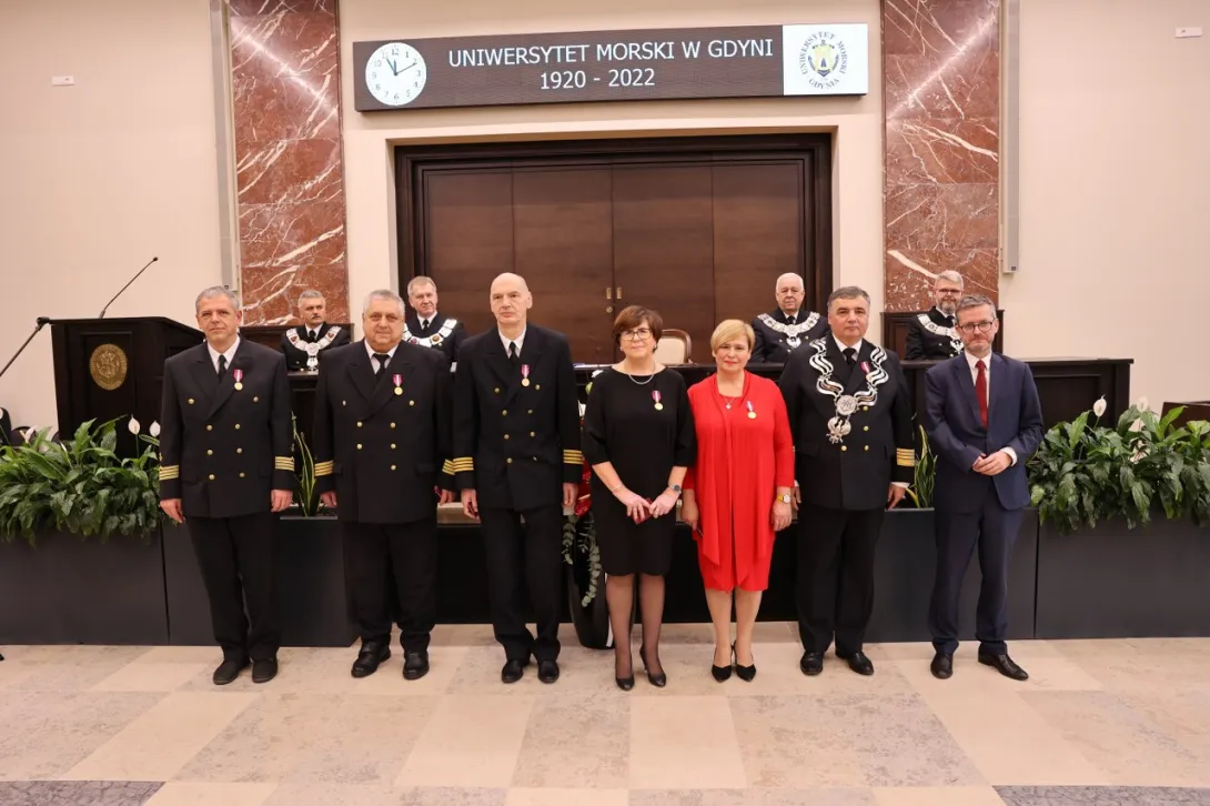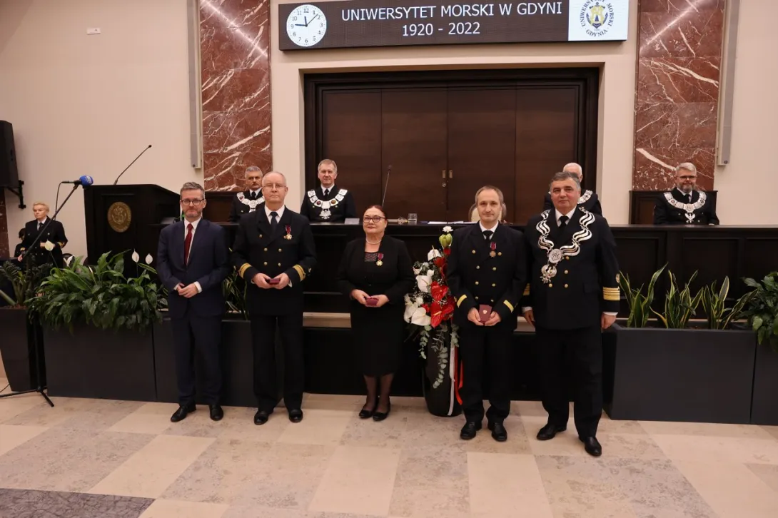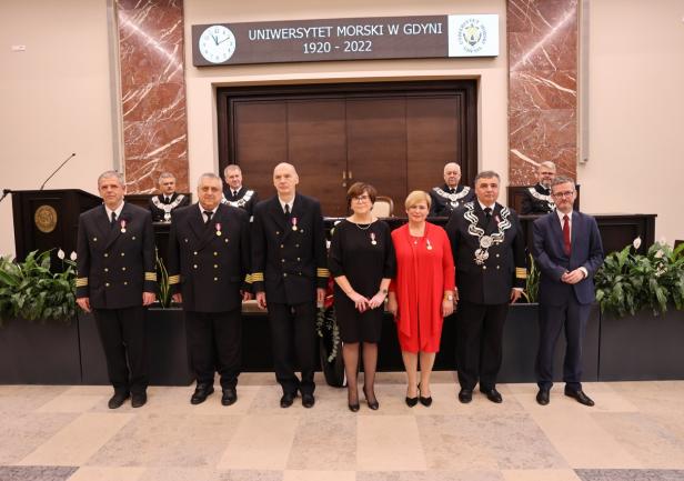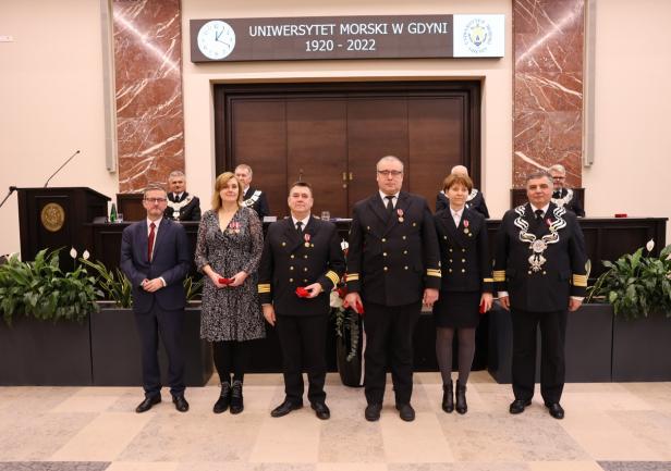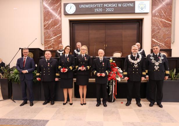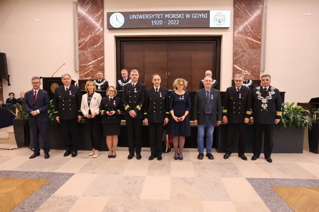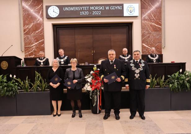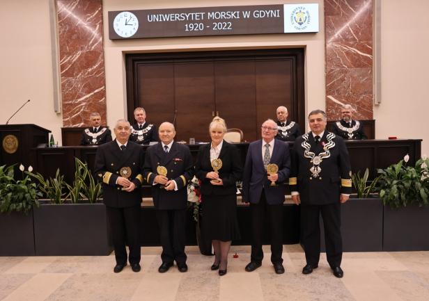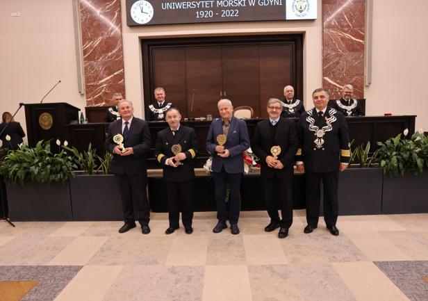 Następnie, Jego Magnificencja Rektor prof. Adam Weintrit wręczył odznaczenia „Zasłużony dla Szkolnictwa Morskiego”, „Zasłużony dla Uniwersytetu Morskiego” oraz „Zasłużony Pracownik Uniwersytetu Morskiego w Gdyni” osobom, które przyczyniły się do rozwoju Uniwersytetu Morskiego w Gdyni i szkolnictwa morskiego.