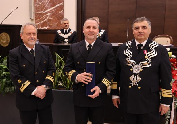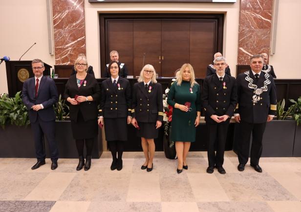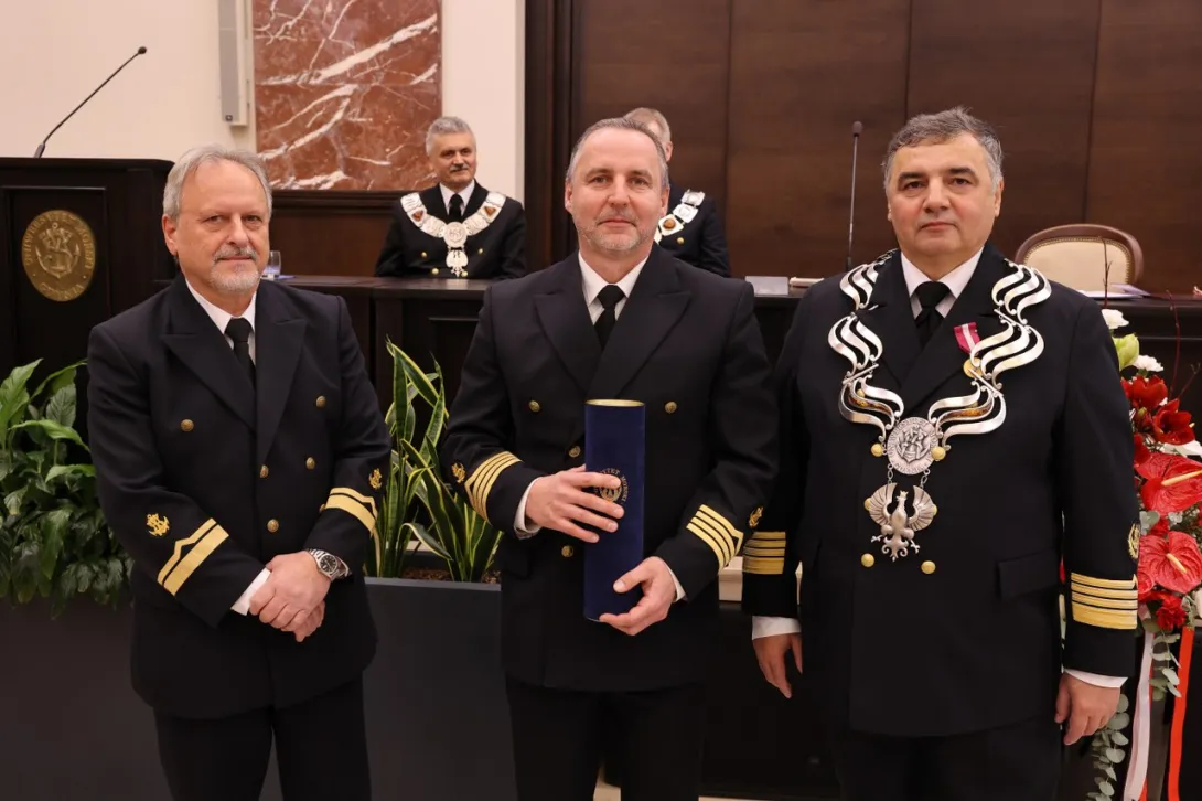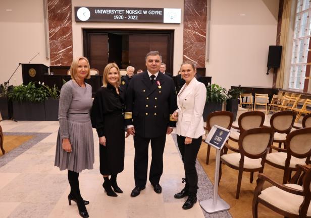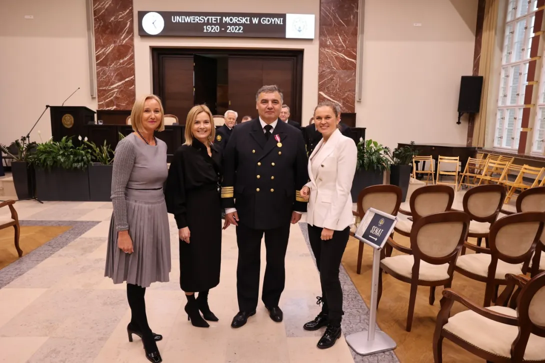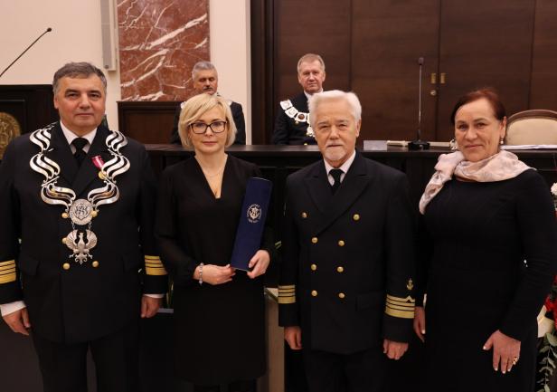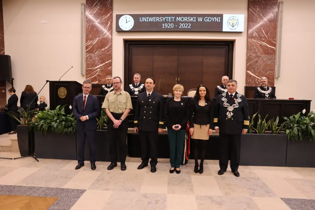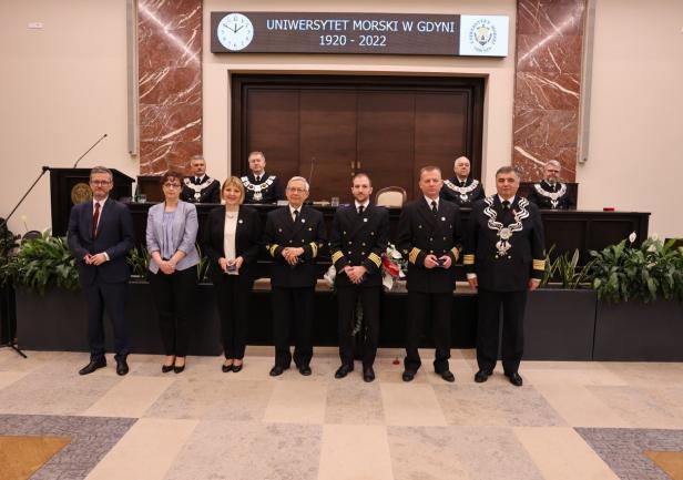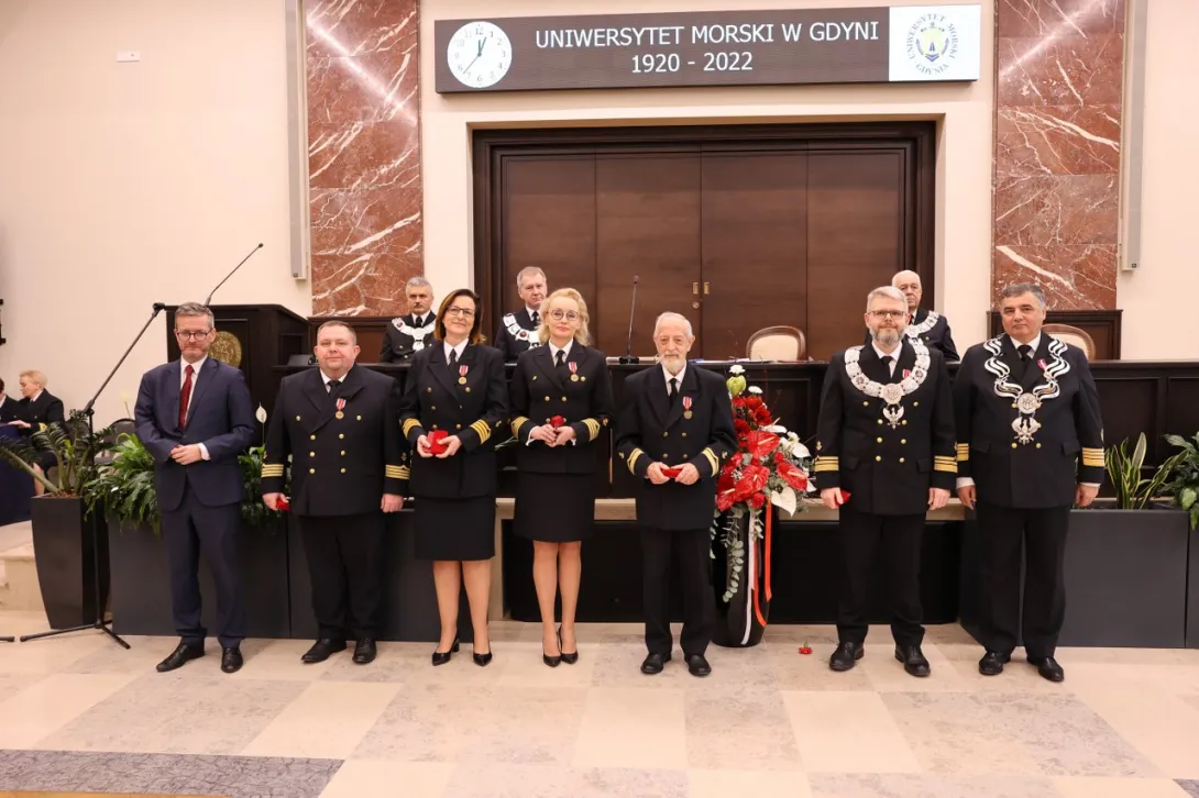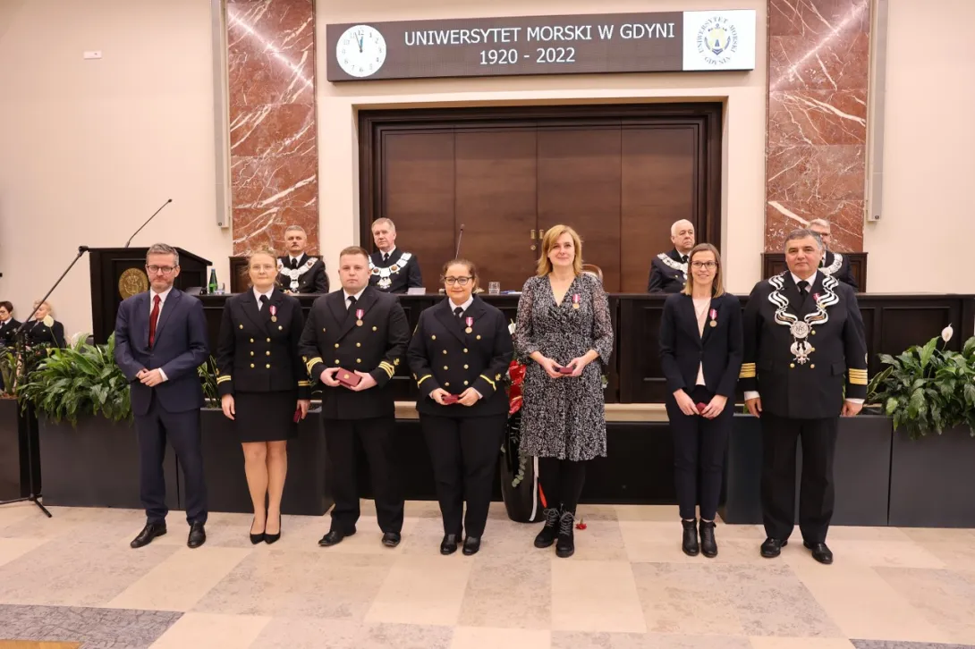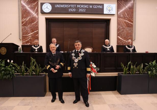 Następnie, Jego Magnificencja Rektor prof. Adam Weintrit wręczył odznaczenia „Zasłużony dla Szkolnictwa Morskiego”, „Zasłużony dla Uniwersytetu Morskiego” oraz „Zasłużony Pracownik Uniwersytetu Morskiego w Gdyni” osobom, które przyczyniły się do rozwoju Uniwersytetu Morskiego w Gdyni i szkolnictwa morskiego.
