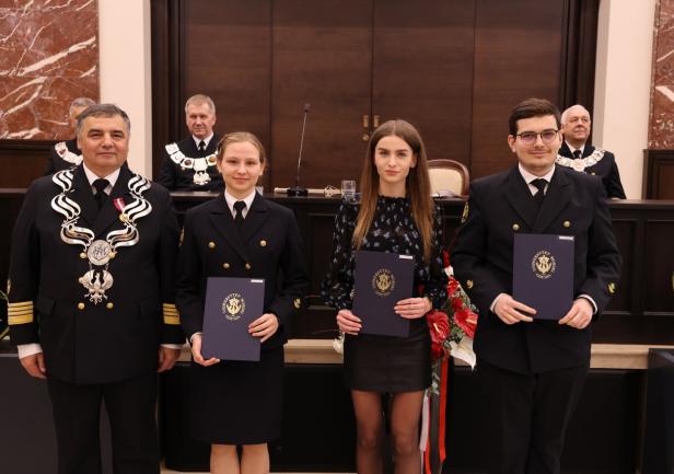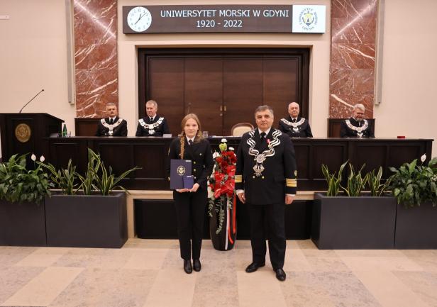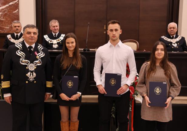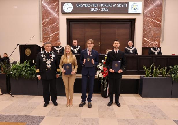 Następnie, Jego Magnificencja Rektor przyznał trzy "Medale Absolwenta Uniwersytetu Morskiego w Gdyni" z wpisem do "Złotej Księgi Absolwentów" za bardzo dobre wyniki w nauce oraz za wysoką ocenę z egzaminu dyplomowego.