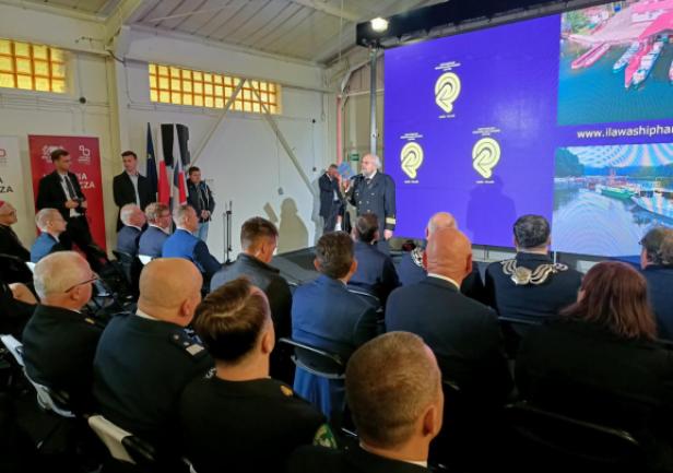 Kolejnym punktem wydarzenia było zaprezentowanie zgromadzonym gościom historii powstania Badawczo-Szkoleniowego Ośrodka Manewrowania Statkami w Iławie, przedstawienie jego bieżącej działalności oraz planów na przyszłość. Prezentacji dokonał Jacek Nowicki, Dyrektor Zarządu Fundacji Bezpieczeństwa Żeglugi i Ochrony Środowiska w Iławie.