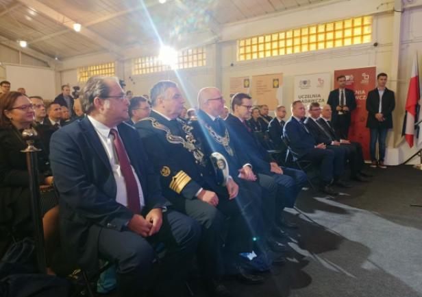 Z ramienia Uniwersytetu Morskiego w Gdyni w uroczystości udział wzięli między innymi JM Rektor prof. dr hab. inż. kpt. ż.w. Adam Weintrit oraz Dyrektor Działu Armatorskiego i Praktyk Morskich dr inż. kpt. ż.w. Bogumił Łączyński, prof. UMG.