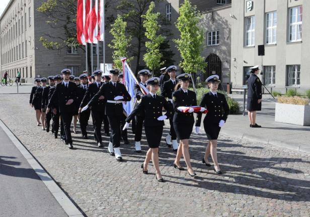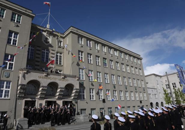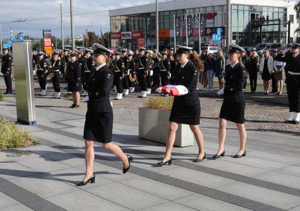 Na placu przed Uczelnią zgromadził się Senat UMG, pracownicy, studenci oraz absolwenci Uczelni. Sztandar Uniwersytetu Morskiego w Gdyni został uroczyście wprowadzony w towarzystwie Kompanii Reprezentacyjnej UMG oraz Orkiestry Morskiego Oddziału Straży Granicznej. Podczas podniesienia bandery Polskiej Marynarki Handlowej został odegrany Hymn Państwowy.