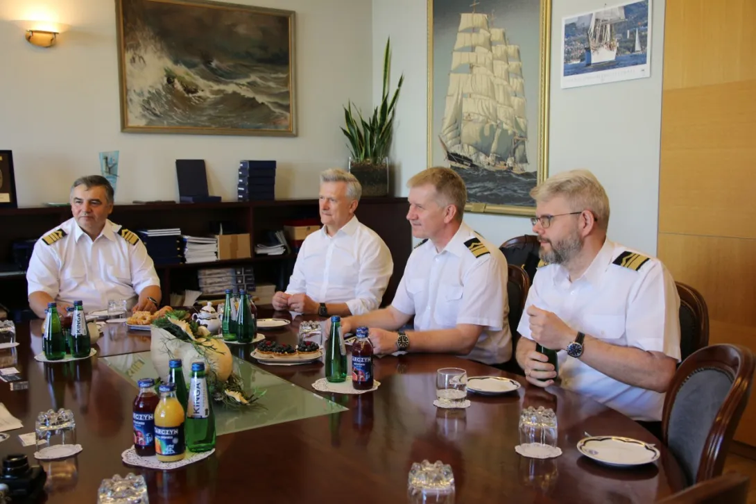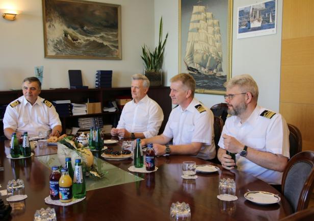 Ze strony UMG w spotkaniu uczestniczyli JM Rektor prof. dr hab. inż. kpt. ż. w. Adam Weintrit, członek Rady Uczelni mgr Sławomir Kalicki, Prorektor ds. Nauki dr hab. Dariusz Barbucha, prof. UMG oraz Prorektor ds. Kształcenia dr hab. Sambor Guze, prof. UMG.
