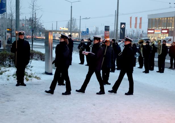 Poranna uroczystość zakończyła się defiladą Kompanii Reprezentacyjnej w towarzystwie Orkiestry Morskiego Oddziału Straży Granicznej.