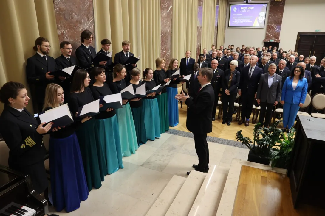 Przebieg uroczystości Święta Szkoły uświetnił występ Akademickiego Chóru Uniwersytetu Morskiego w Gdyni pod dyrekcją dr. Karola Hilli.