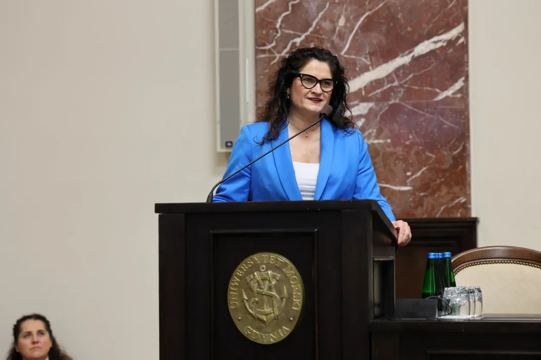 Chciałam Państwu podziękować za to, że podążacie z duchem czasu, że wykorzystujecie wszystkie możliwości współpracy z armatorami, z różnego rodzaju firmami funkcjonującymi na rynku morskim, że kształcie absolwentów, którzy rzeczywiście mogą przyczynić się do rozwoju portów i iść dzisiaj z duchem czasu, jeżeli chodzi o jakiekolwiek wyzwania technologiczne, jeżeli chodzi o kadrę, która jest dzisiaj bardzo potrzebna. (…) Chciałam podziękować za Państwa zaangażowanie w kształtowanie kadry morskiej, za to, że dzisiaj możemy być dumni, że mamy tak wspaniałą uczelnię tu, w Trójmieście i się z niej wywodzimy.