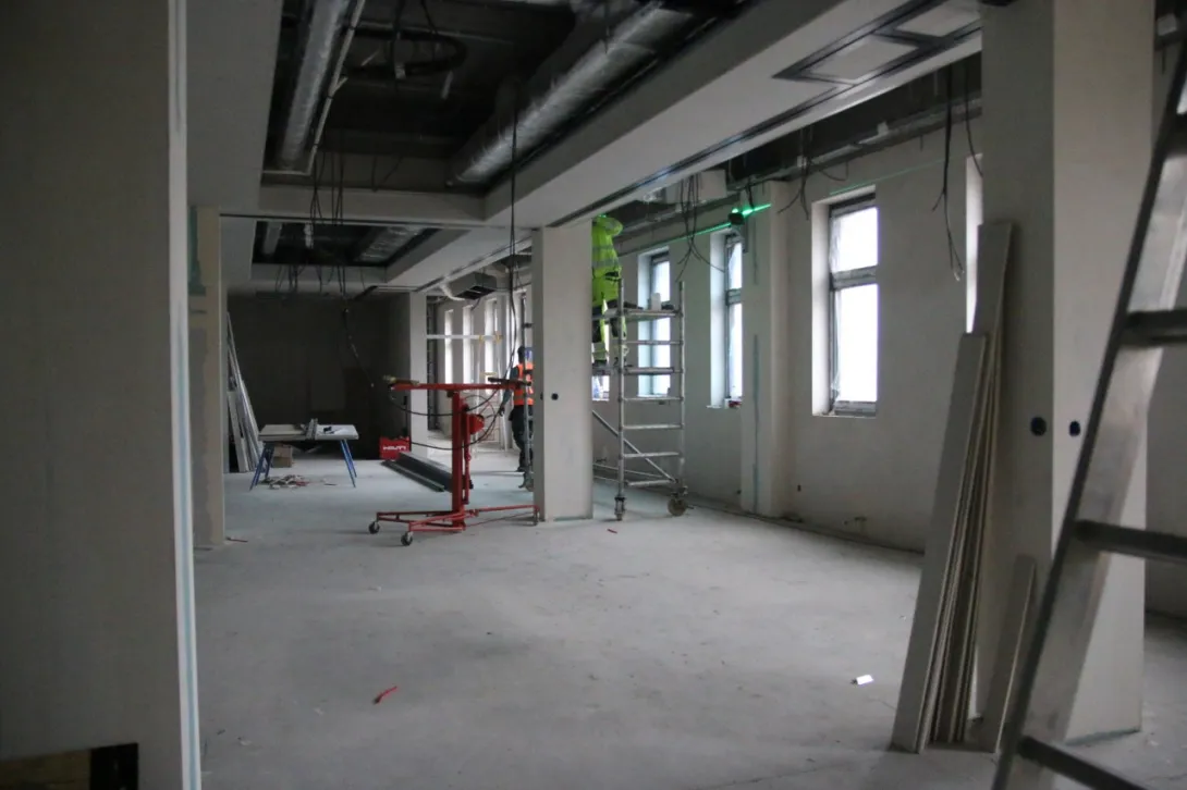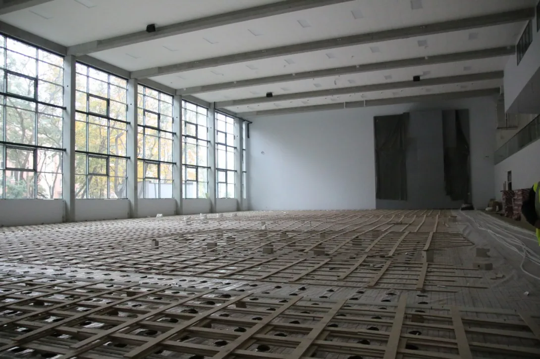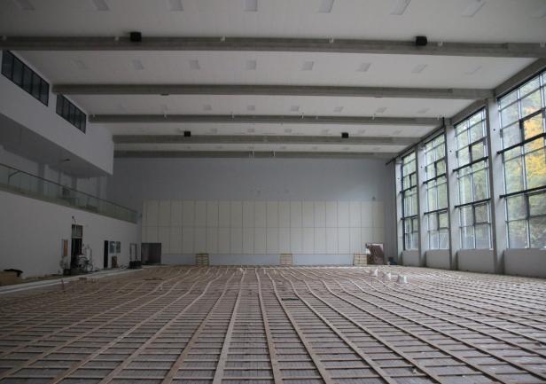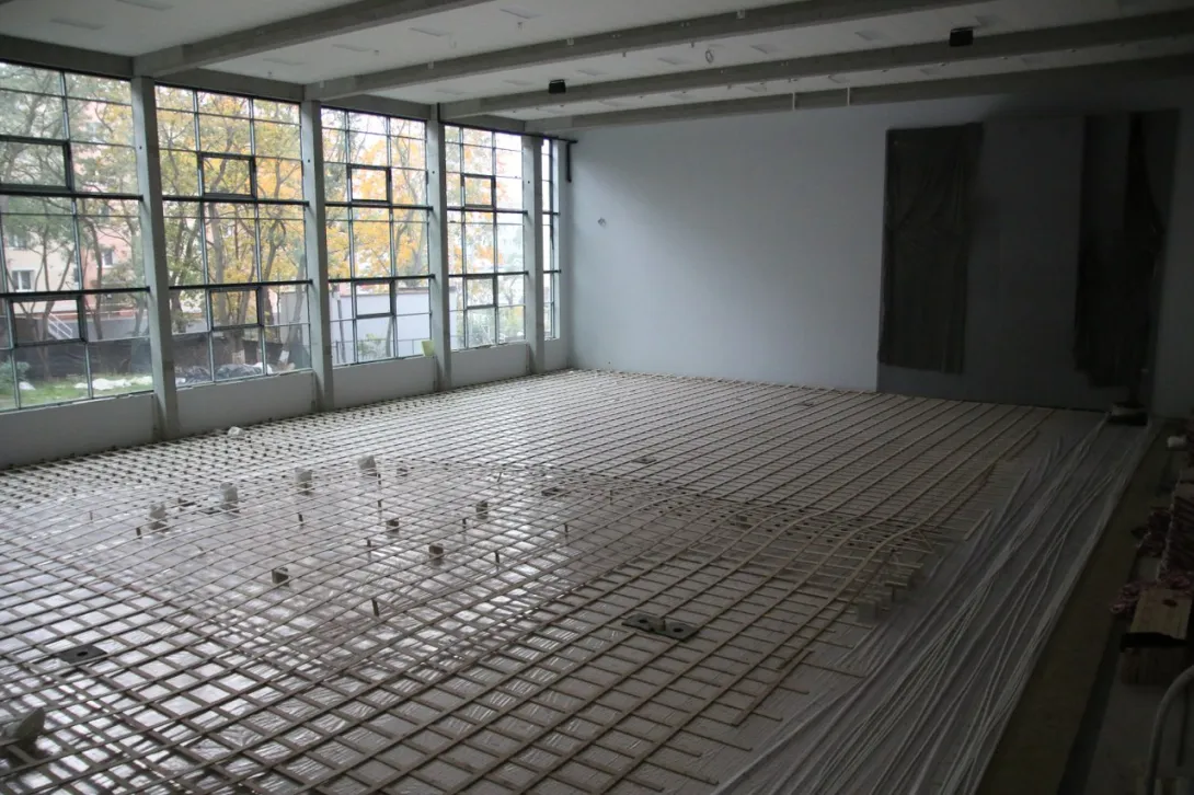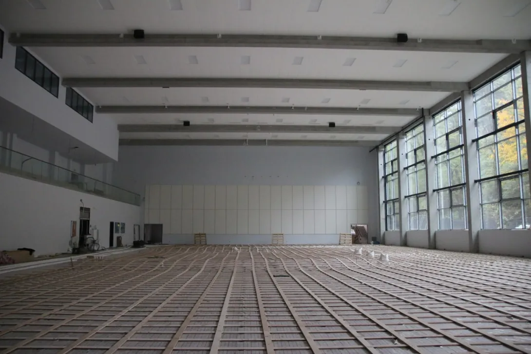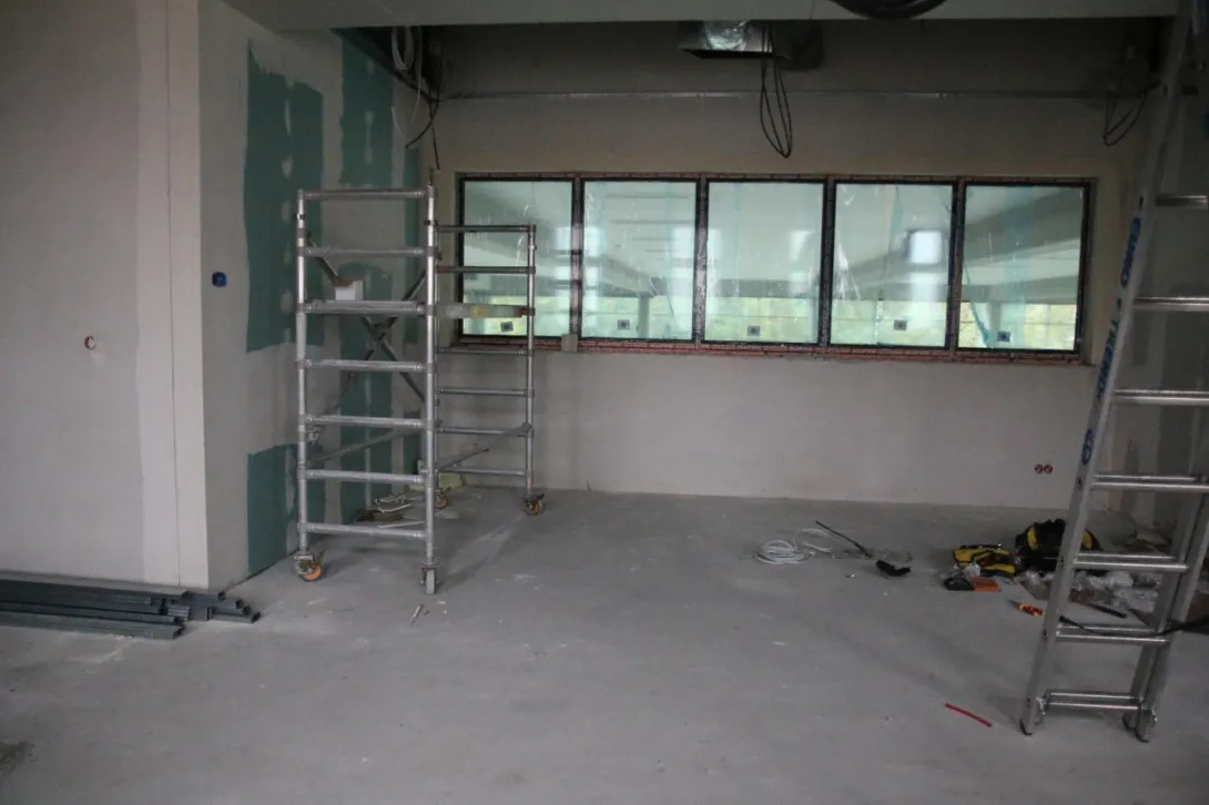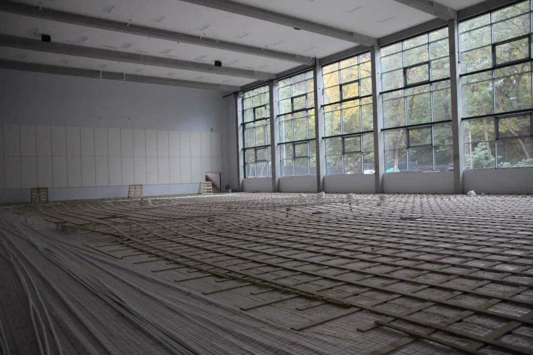 Ukończone zostały roboty związane z przyłączem do sieci ciepłowniczej i elektrycznej mówi Filip Malata, Kanclerz UMG. - Aktualnie budowa „weszła” w fazę robót wykończeniowych. Rozpoczęto szpachlowanie, malowanie i układanie płytek ściennych i posadzkowych, suchą zabudowę oraz montaż sufitu podwieszanego w pomieszczeniach i hali sportowej.