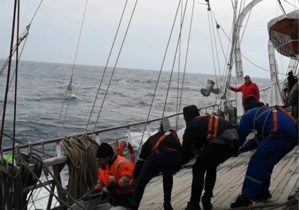 Komendant „Daru Młodzieży” podkreśla, że ten wynik, w takich warunkach wymagał dużego poświęcenia i ciężkiej pracy przy obsłudze żagli.