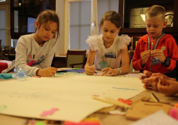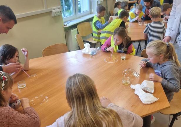 Następnie nasi najmłodsi goście podzieleni zostali na grupy i podążając śladami Wilczka Morskiego, udawali się do kolejnych miejsc, w których przygotowane zostały dla nich ciekawe zajęcia i warsztaty, a wśród nich: