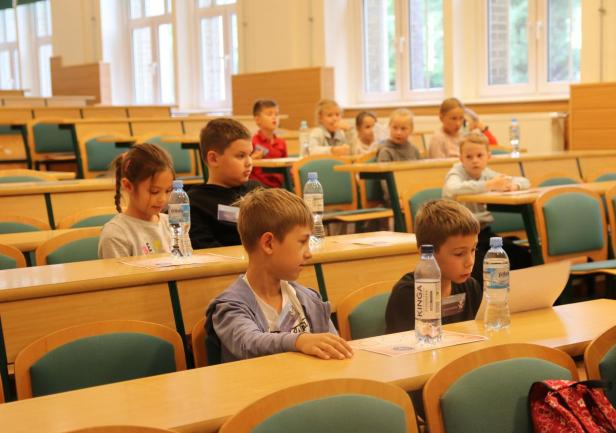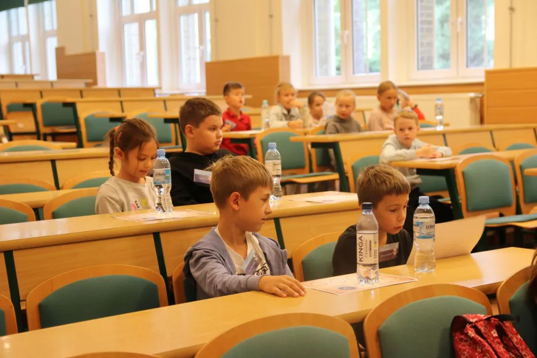 Już o godzinie 8:00 gmach Uniwersytetu wypełnił się radosnym gwarem przyszłych, małych studentów, którzy w towarzystwie rodziców przybyli na spotkanie organizacyjne. Dzieci dowiedziały się, jaki jest program całego dnia oraz zapoznały się z listem pozostawionym przez Wilczka Morskiego, który napisał: