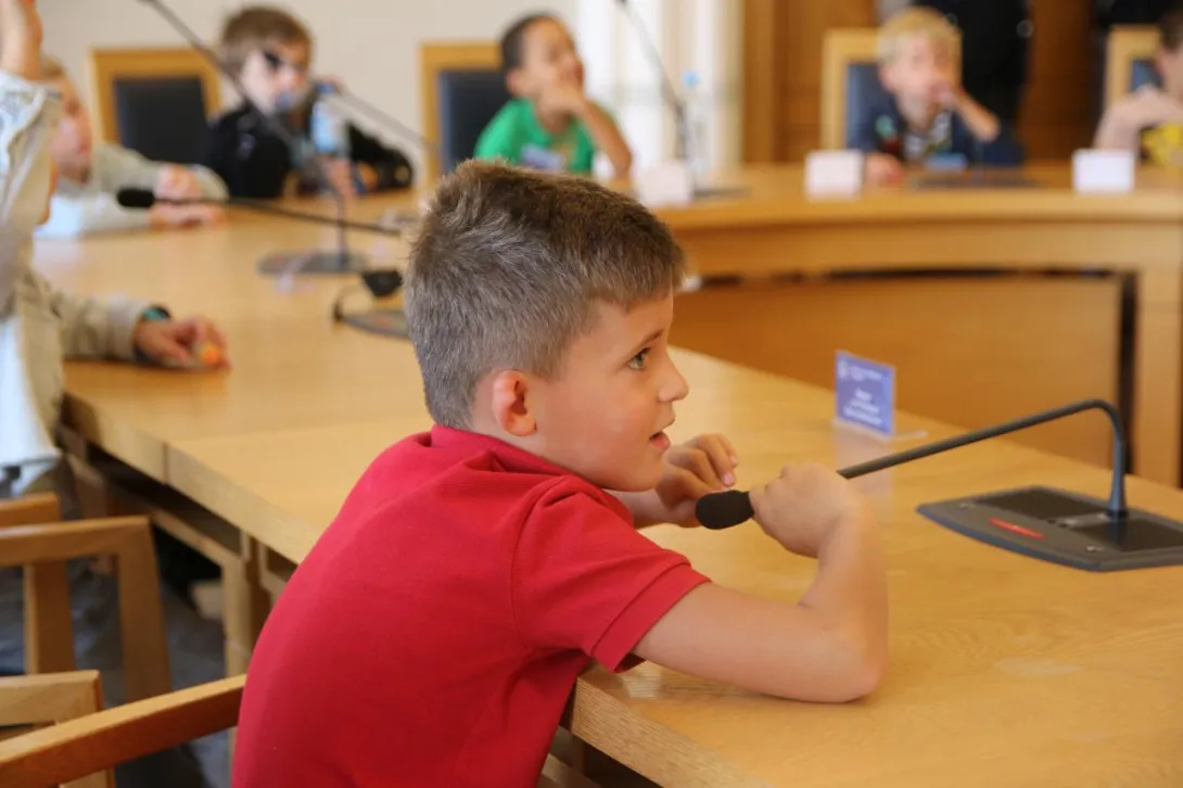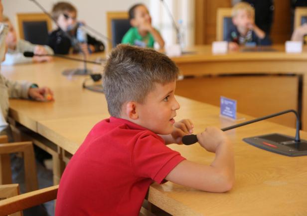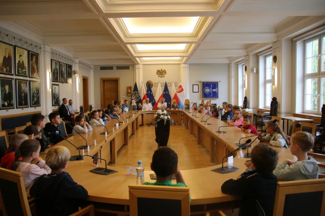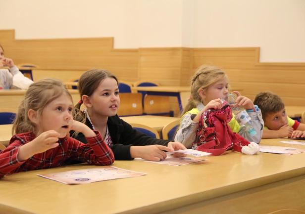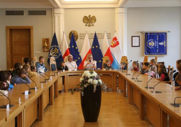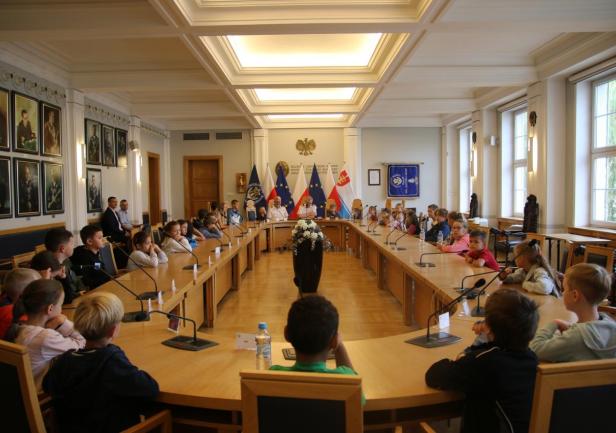 Po spotkaniu organizacyjnym i pożegnaniu z rodzicami uczestnicy Dnia Małego Studenta skierowali się wraz z opiekunami do Sali Senatu na spotkanie z władzami Uczelni. Dzieci zostały przywitane przez dr. hab. Dariusza Barbuchę, prof. UMG – Prorektora ds. nauki i dr. hab. Sambora Guze, prof. UMG – Prorektora ds. kształcenia. Spotkanie rozpoczęło się od uderzenia w dzwon, zgodnie z obowiązującą w naszej Uczelni tradycją rozpoczynania obrad Senatu. W rozmowach z dziećmi nie zabrakło wątków dotyczących działalności Uczelni i jej historii. Na zakończenie wykonano wspólne, pamiątkowe zdjęcie wszystkich uczestników.
