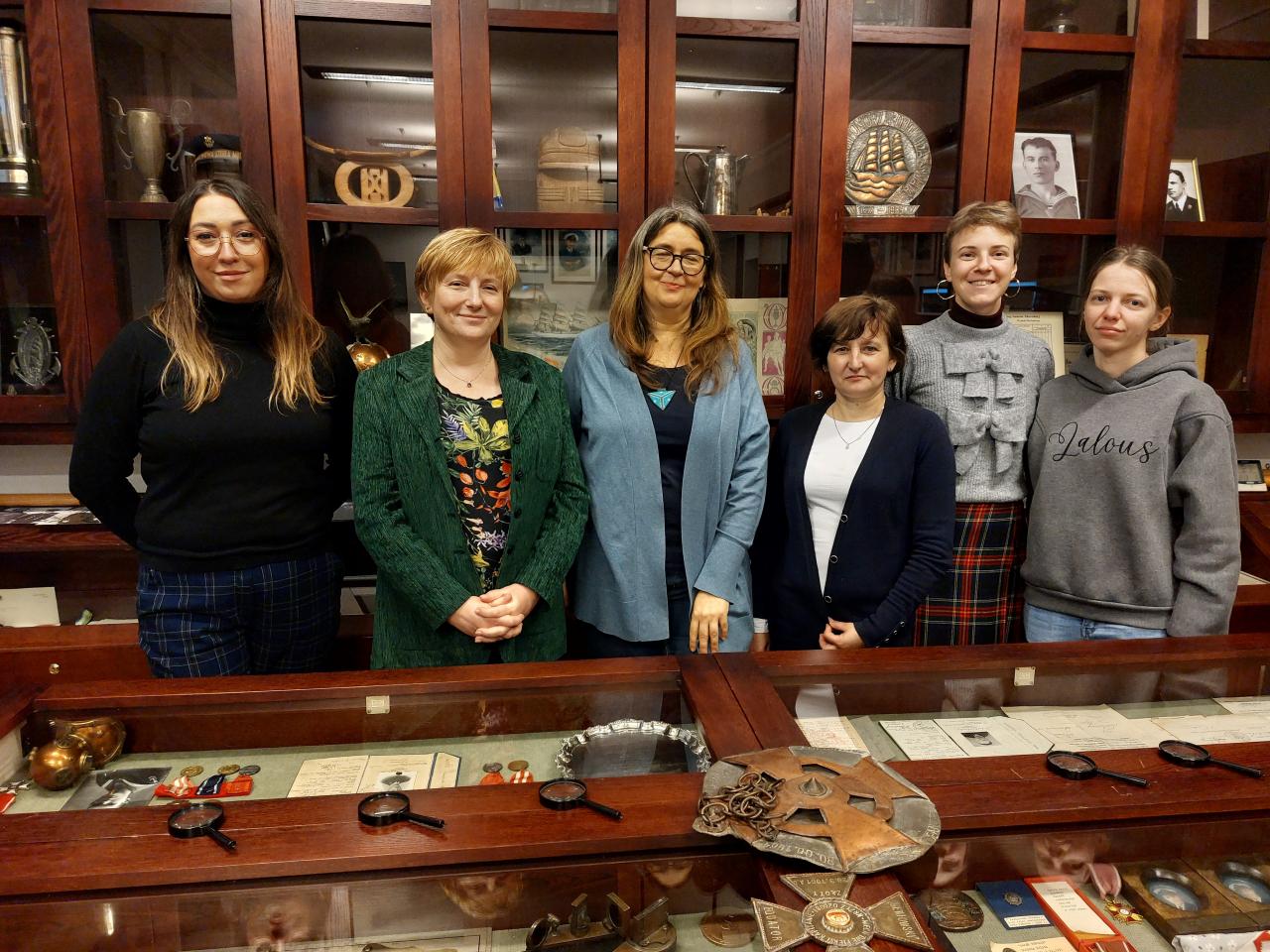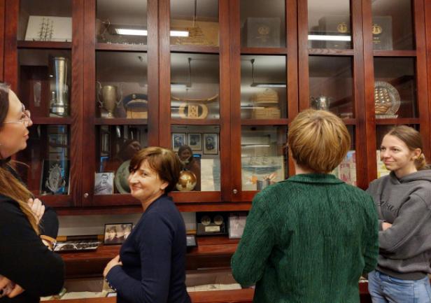 Salę Tradycji odwiedziły 5 grudnia 2023 r. panie przewodniczki i kustosz z „Daru Pomorza” – Narodowego Muzeum Morskiego. Zapoznały się z eksponatami nie tylko z Białej Fregaty, ale i pozostałymi, dotyczącymi historii uczelni i jej absolwentów. Następne spotkanie w Sali Tradycji planowane jest na wiosnę.