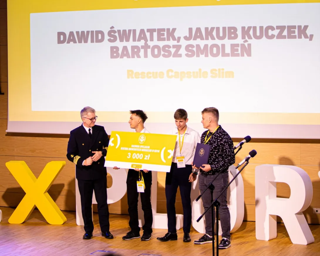 Gala finałowa zwieńczyła 23. edycję Gdynia Explory Week 2023. Nagrodę specjalną JM Rektora Uniwersytetu Morskiego w Gdyni otrzymali twórcy „Rescue Capsule Slim”.