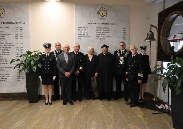Prof. Hans Rummel z Hochschule Bremerhaven otrzymał w piątek, 6 października 2023 roku tytuł doktora honoris causa Uniwersytetu Morskiego w Gdyni. Jest to jedno z najwyższych wyróżnień w świecie akademickim. Do tej pory Uniwersytet Morski w Gdyni przyznał pięć takich tytułów - profesor Hans Rummel jest pierwszym zagranicznym przedstawicielem świata nauki, który otrzymał taką godność.