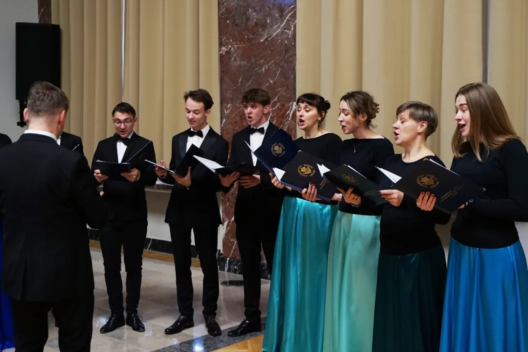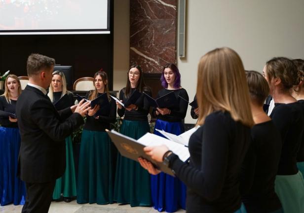 Spotkanie było okazją do podzielenia się opłatkiem i wysłuchania kolęd w wykonaniu Akademickiego Chóru Uniwersytetu Morskiego w Gdyni pod dyrekcją dr. Karola Hilli.