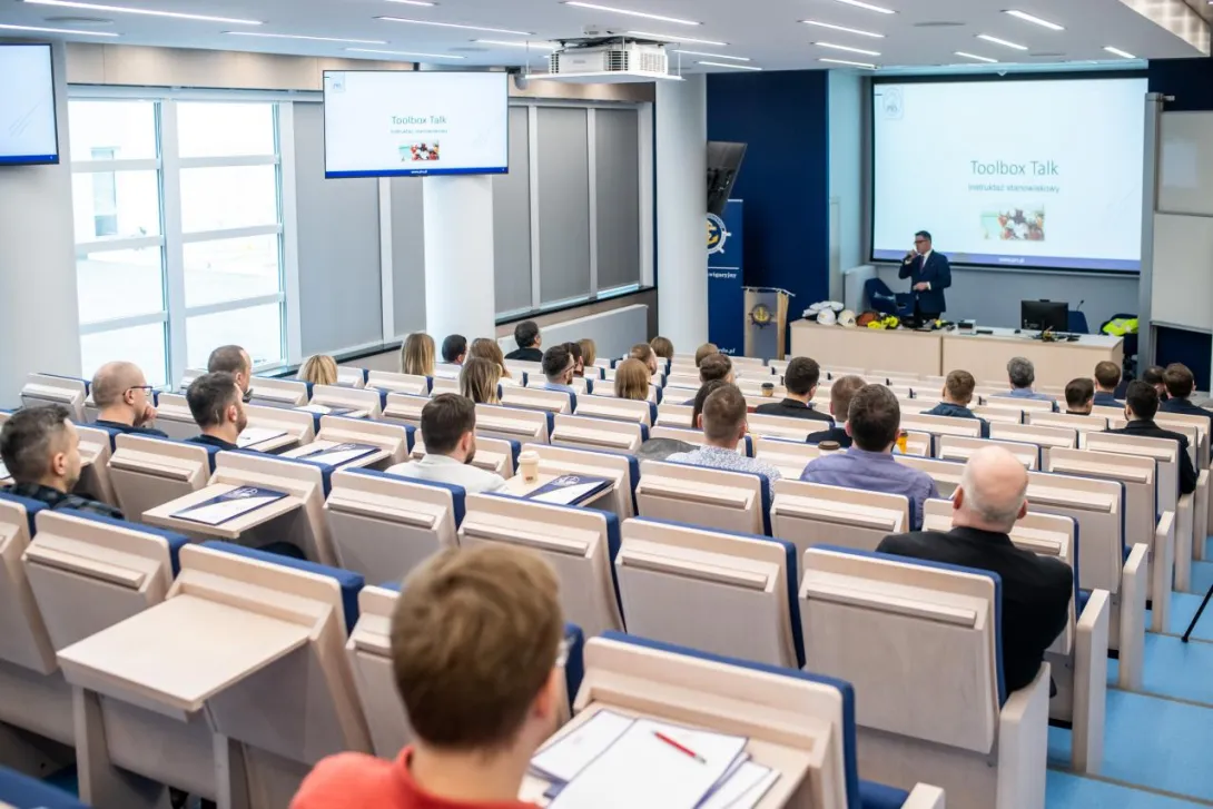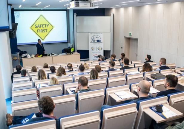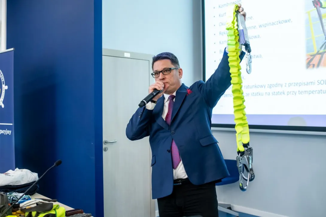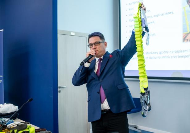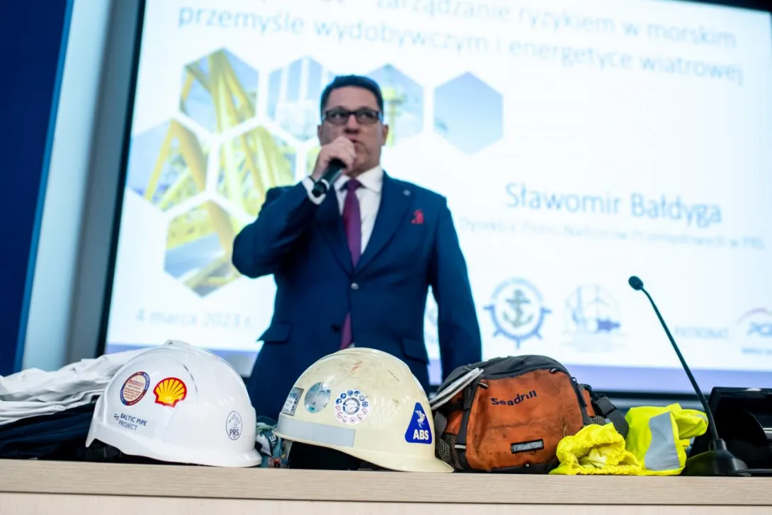 Sławomir Bałdyga, Dyrektor Pionu Nadzorów Przemysłowych w PRS, w swoim wykładzie zwrócił uwagę na potrzebę wypracowania nawyków bezpiecznego zachowania każdego z nas w codziennym życiu i dbania o bezpieczeństwo swoje oraz innych pod hasłem „bezpieczeństwo przede wszystkim”. Podkreślił, że w branży offshore hasło „safety first” nabiera szczególnie ważnego znaczenia i wskazał, jak nieprzestrzeganie zasad bezpieczeństwa może mieć katastrofalne skutki. Dyrektor Pionu Nadzorów Przemysłowych w PRS w czasie wykładu zaprezentował sprzęt ochrony osobistej niezbędny w pracy w sektorze offshore. Sławomir Bałdyga pokreślił, jak istotny jest jego dobór, a pozornie mało istotne elementy i przestrzeganie zasad bezpiecznego zachowania, może uratować życie. W drugiej części wykładu poruszył zagadnienia dotyczące zarządzania ryzykiem projektu, podkreślając, jak ważną rolę pełnią standardy, przepisy i szkolenia, a zwłaszcza w tej branży. Na koniec przedstawił misję, jaką pełnią towarzystwa klasyfikacyjne w tym PRS, z którym jest związany od 2017 roku i którego celem jest pomoc w zapewnieniu bezpieczeństwa ludzi, obiektów pływających i lądowych, ładunków i środowiska naturalnego.