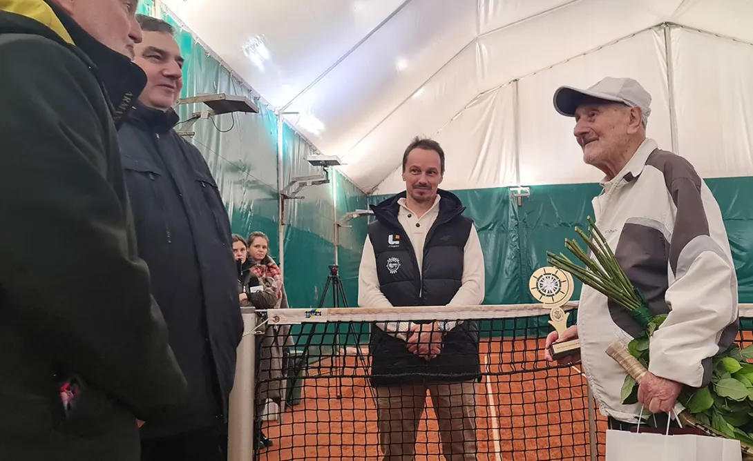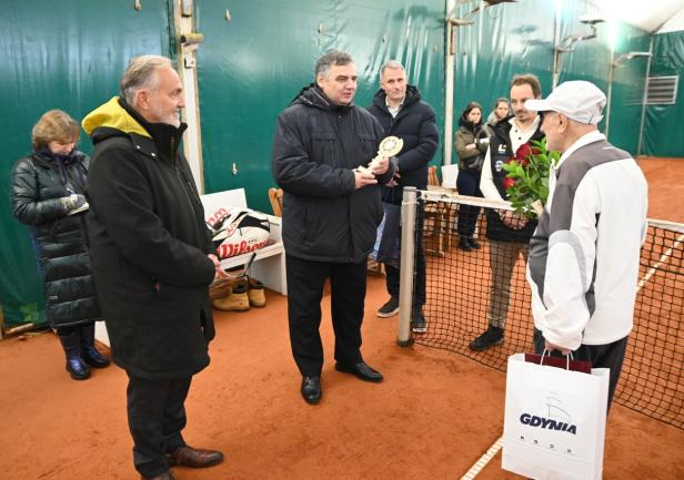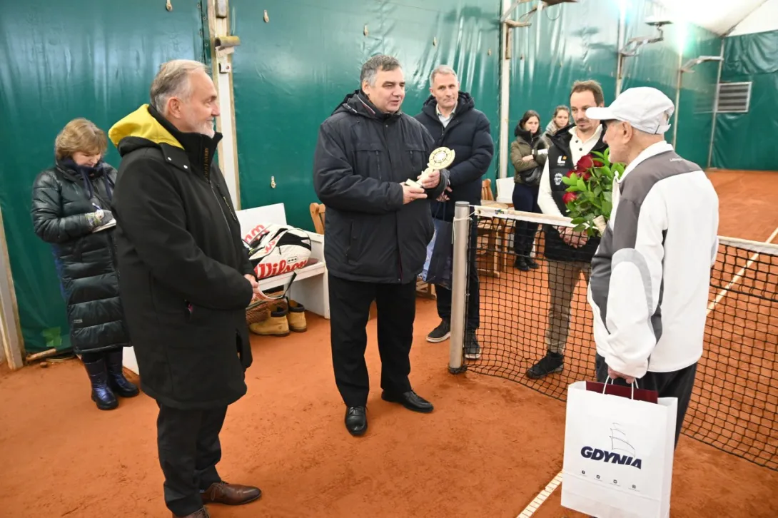 Najstarszy w Polsce i prawdopodobnie na świecie tenisista w piątek, 3 lutego 2023 roku skończył 100 lat. Tadeuszowi Krzyszkowskiemu życzenia na korcie złożyli Rektor Uniwersytetu Morskiego w Gdyni, prof. dr hab. inż. kpt. ż.w. Adam Weintrit, Prezydent Gdyni dr Wojciech Szczurek, Prezes KT Arka Gdynia Radosław Szymanik i dyrektor Centrum Sportu i Rekreacji UMG dr Andrzej Lachowicz.