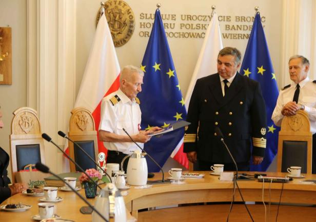 JM Rektor prof. dr hab. inż. kpt. ż.w. Adam Weintrit zwrócił także uwagę uczestników uroczystości na „Dar Młodzieży”, który od ponad 40 lat kontynuuje tradycje swojego poprzednika, wskazując przy tym na konieczność budowy jego następcy po to, aby szkolenia przyszłych oficerów floty handlowej nadal mogły odbywać się na żaglowcu, co jest najlepszą metodą nauki zawodu marynarza.