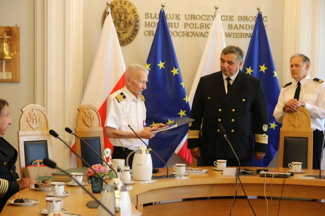 W dniu 20 sierpnia 2024 roku w Sali Senatu Uniwersytetu Morskiego w Gdyni odbyła się uroczystość wręczenia Panu prof. dr. kpt. ż.w. Danielowi Dudzie pamiątkowego bulaju z 1. rejsu „Daru Młodzieży”. Symbolicznego przekazania tego wyjątkowego przedmiotu na ręce Rektora Uczelni w latach 1972-1981 dokonał JM Rektor prof. dr hab. inż. kpt. ż.w. Adam Weintrit.