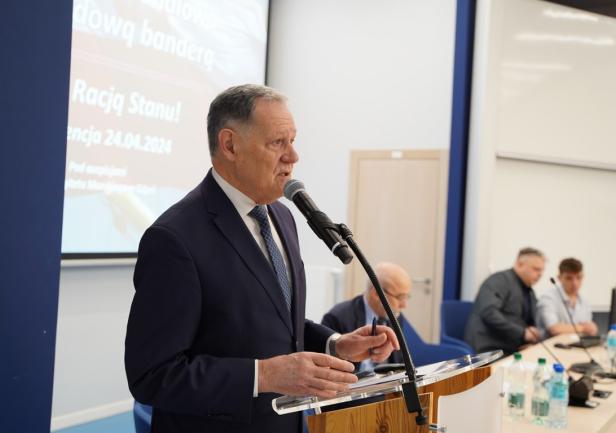 „(…) dzisiejsza konferencja odbywa się w miejscu wyjątkowym, to jest na Wydziale Nawigacyjnym Uniwersytetu Morskiego w Gdyni, a zatem Uczelni, która jest armatorem trzech statków, pływających pod polską, biało-czerwoną banderą”.