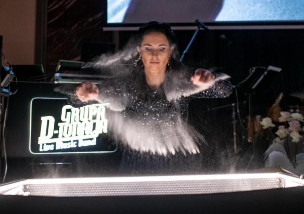 Niespodzianką wieczoru był imponujący pokaz Magdaleny Suszek-Bąk malującej solą na żywo. Artystka w swoich pokazie przedstawiła historię Uniwersytetu oraz Gdyni rysując dłońmi obrazy za pomocą specjalnej soli.