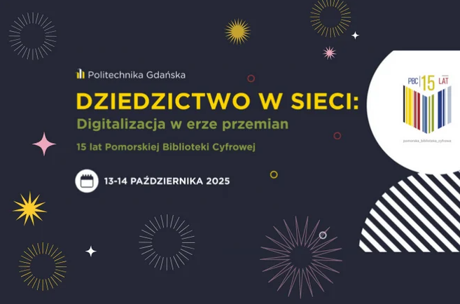 W dniach 13-14 października 2025 r. w Gmachu Głównym Politechniki Gdańskiej odbyła się jubileuszowa konferencja z okazji 15-lecia Pomorskiej Biblioteki Cyfrowej "Dziedzictwo w sieci: digitalizacja w erze przemian", której współorganizatorem była Biblioteka Główna Uniwersytetu Morskiego w Gdyni.