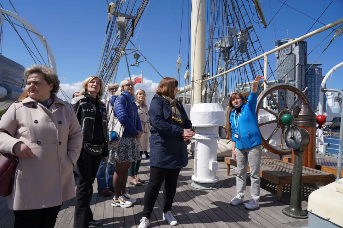 Następnie uczestnicy wydarzenia udali się na Wydział Nawigacyjny UMG, gdzie zwiedzili  Planetarium im. A. Ledóchowskiego oraz mieli okazję zapoznać się z działaniem Symulatora manewrowo-nawigacyjnego statku. Tego dnia bibliotekarze mieli również możliwość zapoznania się z wystawą pn. „Unikaj statków, gdzie nie mają zwierząt”, prezentowaną na pokładzie „Daru Pomorza”.