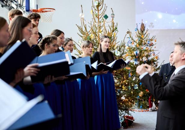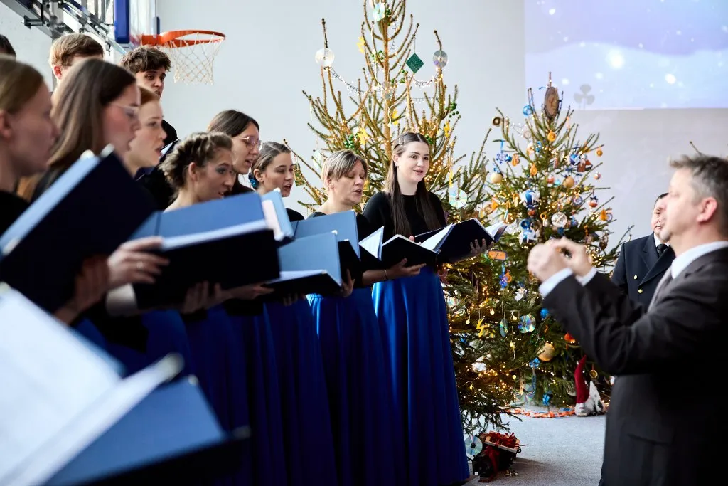 Spotkanie było okazją do podzielenia się opłatkiem i wysłuchania kolęd w wykonaniu Akademickiego Chóru Uniwersytetu Morskiego w Gdyni pod dyrekcją dr. Karola Hilli.