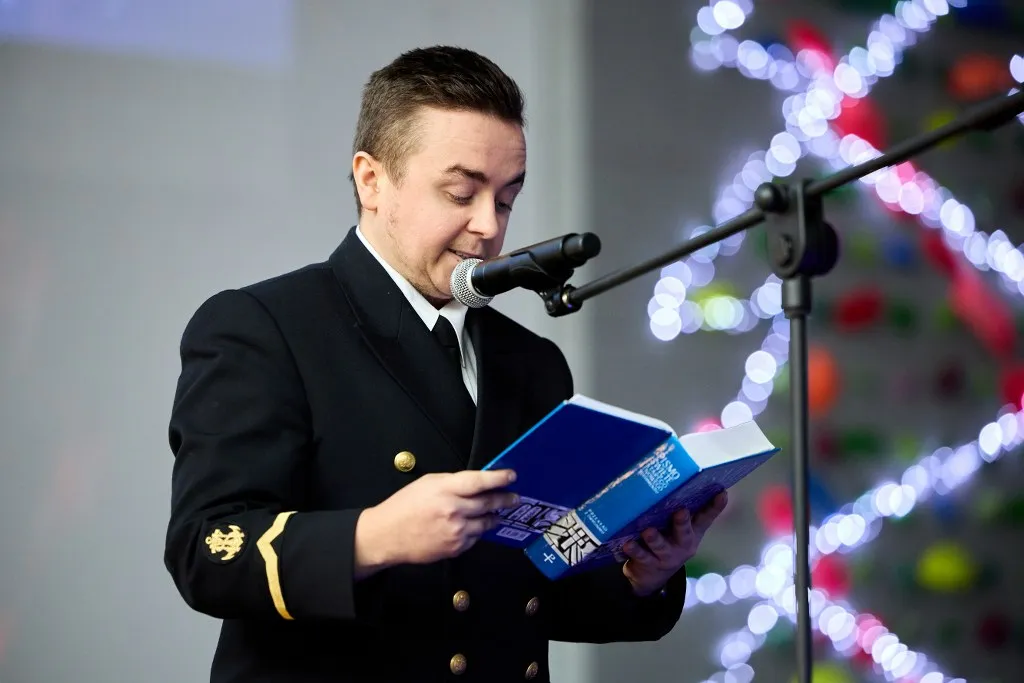 Wydarzenie poprowadził mistrz ceremonii UMG, mgr Aleksander Gosk, który powitał zgromadzonych gości, a następnie oddał głos JM Rektorowi, prof. dr. hab. kpt. ż.w. Adamowi Weintritowi. JM Rektor,  składając życzenia świąteczno-noworoczne, poprosił, aby w tym roku przy świątecznym stole wszyscy tutaj obecni życzliwie pomyśleli o tych, którzy w tym wyjątkowym okresie przebywają na morzu, będąc z dala od swoich bliskich i rodzin.