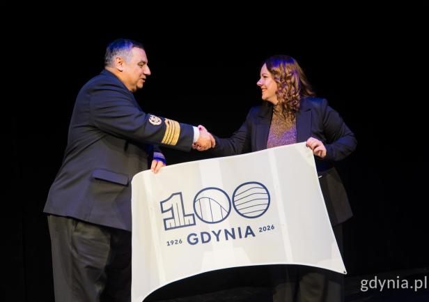 Podczas konferencji, która odbyła się w gdyńskim Teatrze Muzycznym im. M. Baduszkowej, w ramach zapowiedzi jubileuszu JM Rektor prof. Adam Weintrit z rąk prezydent Gdyni Aleksandry Kosiorek oraz przewodniczącego Rady Miasta Gdyni Tadeusza Szemiota odebrał symboliczne żagle stulecia Gdyni, które w 2026 roku prezentowane będą podczas rejsów szkoleniowych na „Darze Młodzieży”. W konferencji prasowej z ramienia Uczelni uczestniczył także Dyrektor Działu Armatorskiego i Praktyk Morskich mgr inż. kpt. ż.w. Dariusz Jellonnek.