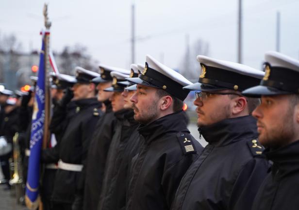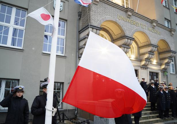 Uroczystość zakończyło odprowadzenie sztandaru Uniwersytetu Morskiego w Gdyni przez Kompanię Reprezentacyjną UMG oraz Orkiestrę Morskiego Oddziału Straży Granicznej.