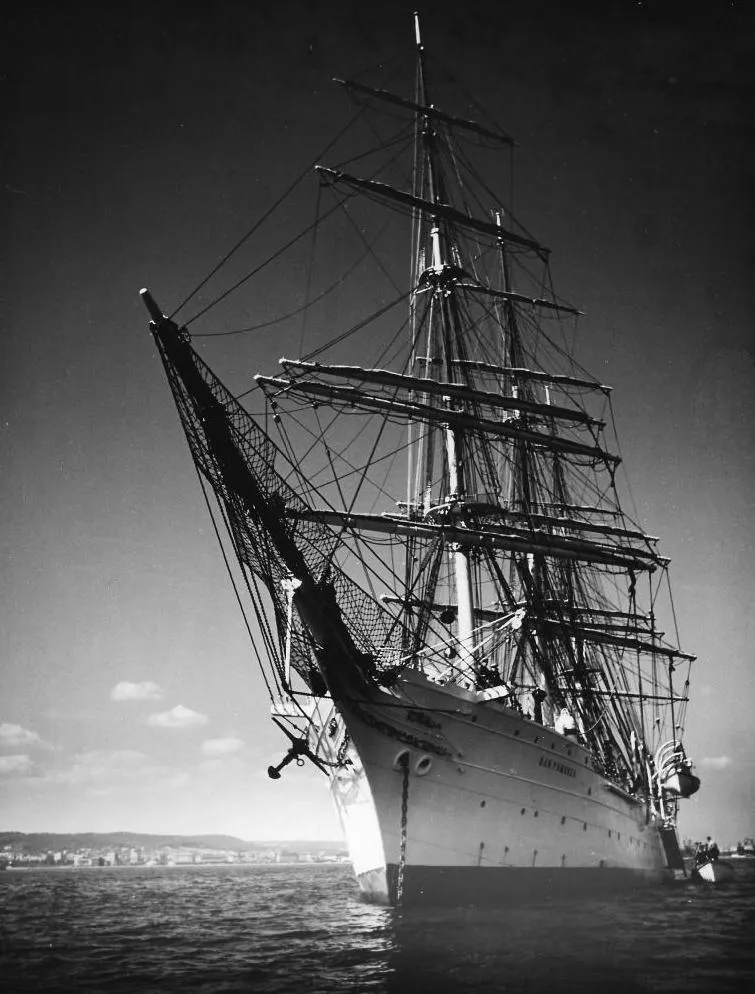 Po zakupie przez Pomorski Komitet Floty Narodowej, żaglowiec, pod nazwą „Pomorze”, z trudnościami na skutek sztormowej pogody, przeholowano na przełomie 1929/30 pod dowództwem Konstantego Maciejewicza z Saint Nazaire do duńskiej stoczni w Nakskov. Tam został wyremontowany i przebudowany - m.in. wstawiono silnik spalinowy, wymieniono olinowanie i instalację elektryczną. Pod nazwą „Dar Pomorza”, nadaną dla upamiętnienia znacznego wkładu finansowego pomorskiego społeczeństwa, przybył do Gdyni 19 czerwca 1930 r. Uroczystego chrztu, poświęcenia statku i bandery dokonał 13 lipca biskup Stanisław Okoniewski. Rodzicami chrzestnymi zostali: Minister Przemysłu i Handlu Eugeniusz Kwiatkowski oraz pani Maria Janta-Połczyńska.