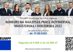 Ogólnopolski konkurs TRUMPF Huettinger na najlepszą pracę inżynierską, magisterską i doktorską