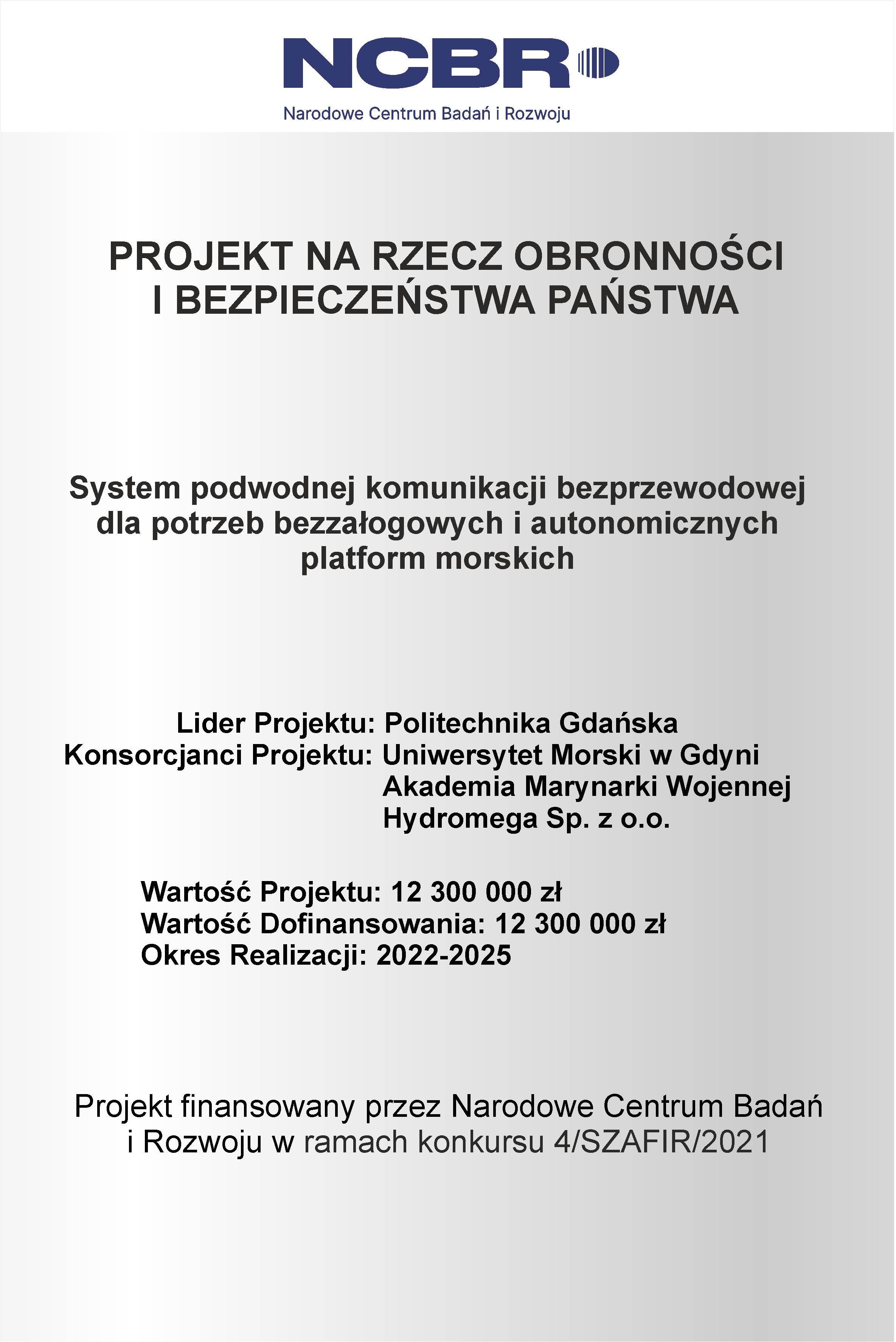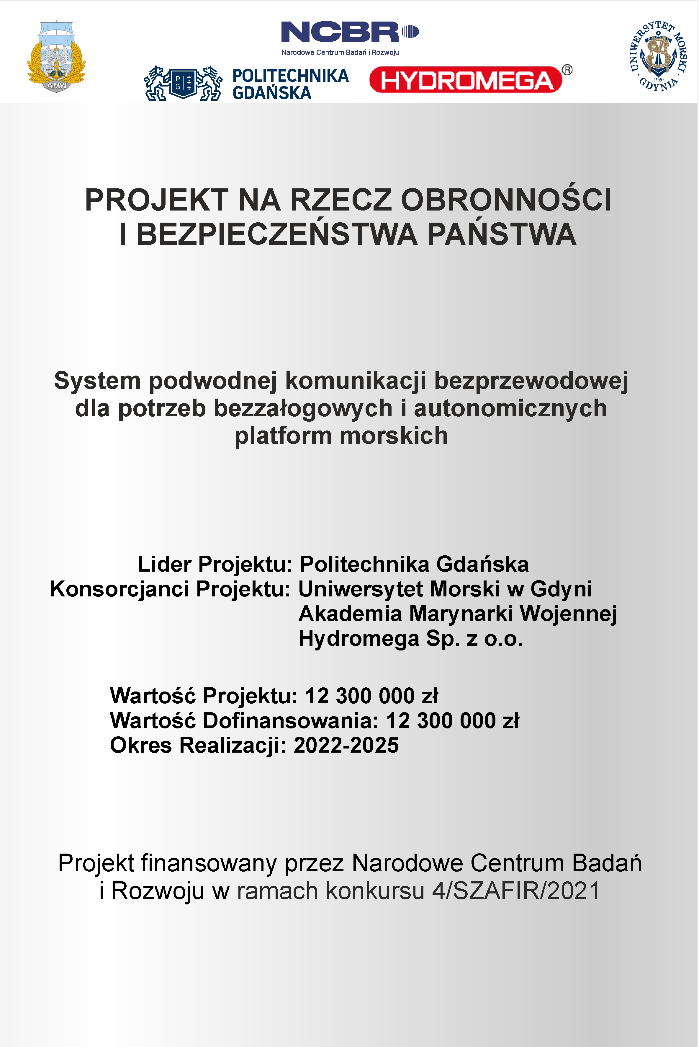 Konsorcjanci Projektu: Uniwersytet Morski w Gdyni, Akademia Marynarki Wojennej, Hydromega Sp. z o.o.